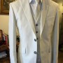 25日の日曜日に無事結婚式を終える事ができました。高木さんに作製いただいたタキシードは大変好評で、天候にも恵まれブルーがとても映えて列席者にはより一層綺麗な色味に見えたようです。